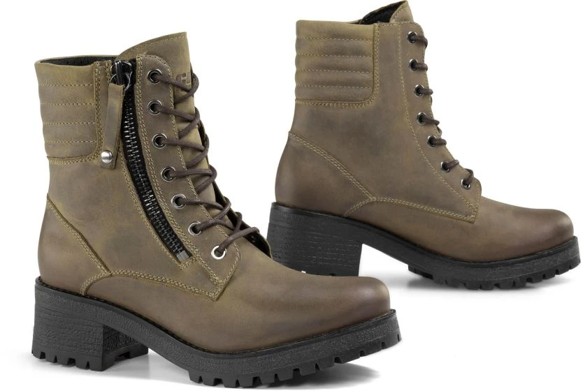 Full-grain leather upper with High-Tex® waterproof membrane. Features reinforced toe and heel, ABS reinforced ankle cup, lace and quick zip closure and high heeled rubber sole.