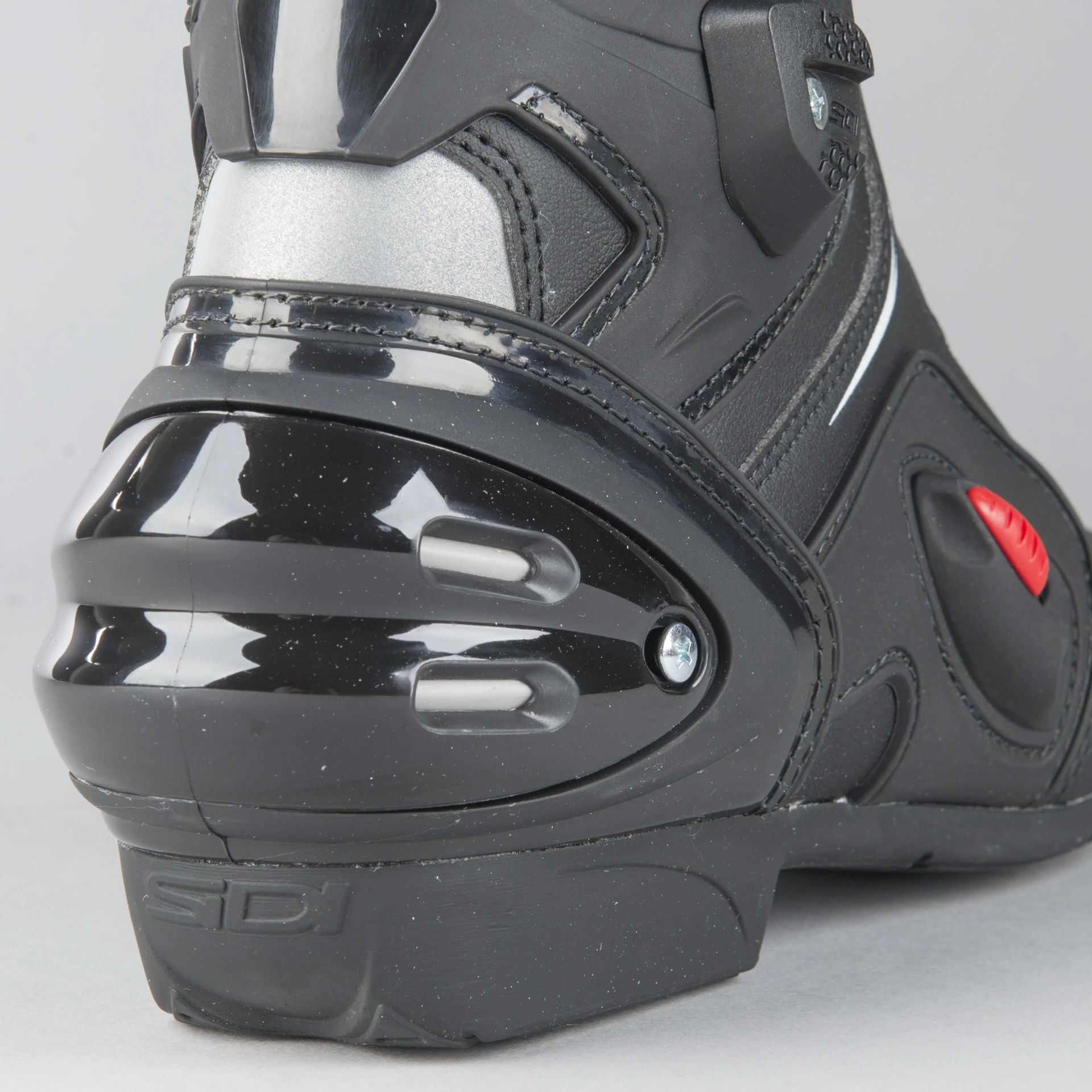 Reinforcements and protection in all the right places for a pair of sports boots There is also sturdy protection over the back of the leg that protects the ankle from twisting and can also be easily adjusted for a perfect fit. The heel protection provides good shock protection and allows the boot to slide against the asphalt.