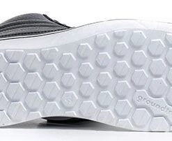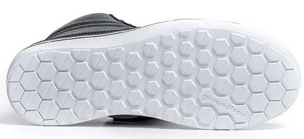 Wear-resistant rubber Groundtrax® outsole designed to offer a superior stability.